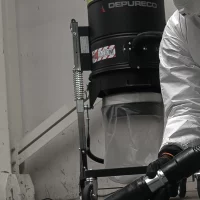 El M100 Jet Clean® LP destaca como la aspiradora industrial ciclónica monofásica más dominante dentro de la gama de productos Depureco. Con la utilización de 3 motores By-Pass, alcanza una sorprendente potencia de 3,3 CV. La aspiradora industrial M100 Jet Clean® es capaz de funcionar en cualquier circunstancia, manejando eficazmente polvo, virutas, líquidos y materiales difíciles a través de mangueras de varios metros de longitud. Esta aspiradora viene equipada con un filtro de PTFE estándar, certificado como Clase M por el BIA (Berufsgenossenschaftliches Institut für Arbeitssicherheit), que proporciona una eficacia de filtración de 1 µ. Para limpiar el filtro, el sistema JetClean® utiliza la diferencia de presión entre el interior y el exterior de la aspiradora. La entrada tangencial y la cubierta protectora del cartucho filtrante aprovechan eficazmente el efecto ciclónico del polvo, ralentizándolo y dirigiéndolo para que se deposite en el interior del contenedor, salvaguardando así el filtro. La aspiradora M100 Jet Clean® LP también incorpora un sistema Longopac, en el que el material aspirado se encierra automáticamente dentro de una robusta bolsa de plástico transparente desechable. El operario puede determinar el volumen de la bolsa, sellarla y cortarla sin contacto directo con el material aspirado. Esta característica garantiza la seguridad del operario cuando trabaja con polvos finos y peligrosos.