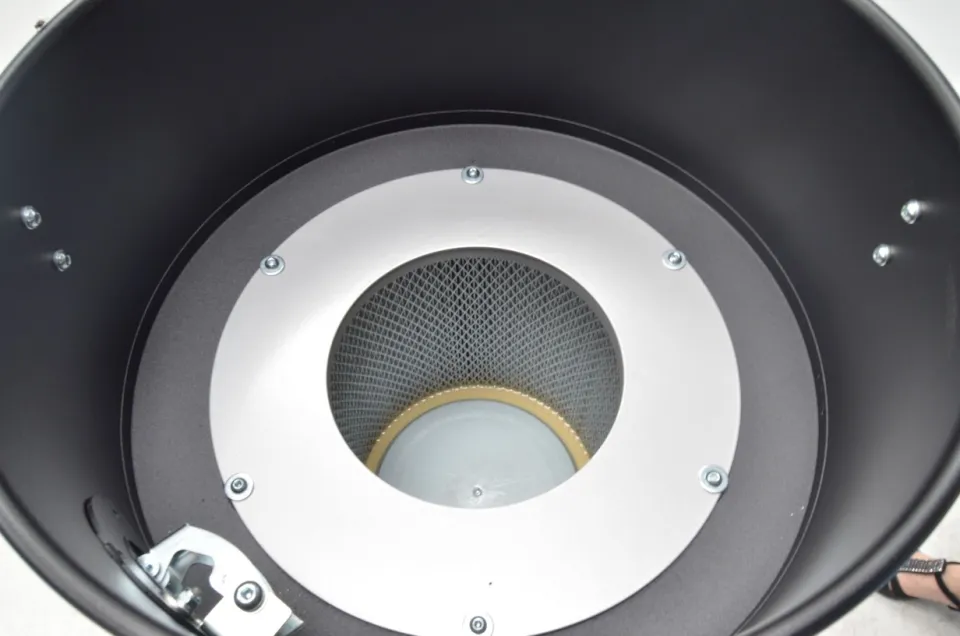 Automatic reverse jet cleaning system. Antistatic M class filter (EN-60335-2-69), 3 Polyester filter cartridges, 9 m2 filter surface.