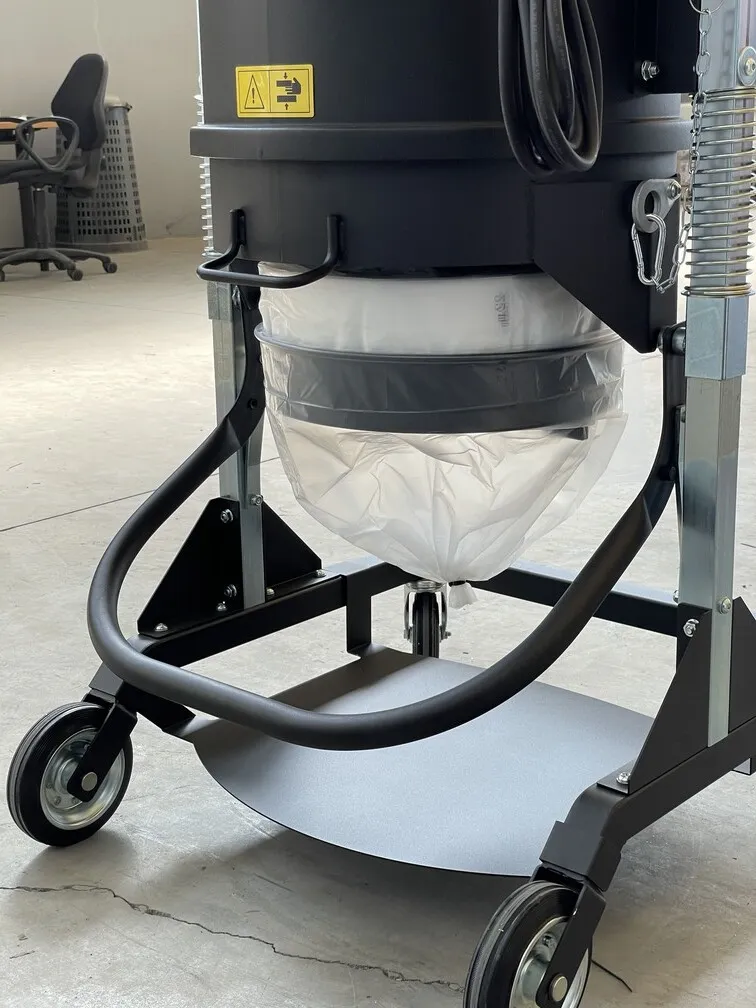Además, la aspiradora M100 LP incorpora un sistema de ensacado directo, que agiliza el proceso de eliminación al permitir ensacar directamente los materiales sin necesidad de manipularlos o transferirlos manualmente.