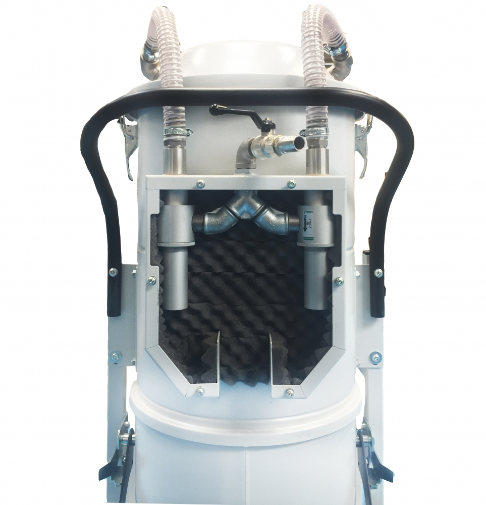El MINI AIR Z2-Z22 es una aspiradora de aire comprimido intrínsecamente segura que ofrece una potencia y versatilidad excepcionales para una amplia gama de aplicaciones industriales. Cuenta con dos eyectores que funcionan en paralelo y ofrecen el máximo rendimiento. Cada eyector es ajustable, lo que permite personalizar el flujo de aire o la fuerza del vacío en función de la tarea específica que se vaya a realizar. En el interior de la aspiradora encontrará un filtro de gran superficie fabricado en poliéster antiestático, certificado como clase M con una eficacia de filtración de 1 micra. Este filtro garantiza la recogida segura del polvo cargado electrostáticamente. Además, hay disponible un filtro H14 opcional para capturar las partículas más finas. La aspiradora viene equipada con un eficaz sistema de limpieza manual del filtro. Simplemente utilizando la palanca situada fuera de la cámara de filtrado, el operario puede sacudir el filtro, haciendo que el polvo se deposite directamente en el recipiente de recogida. Para una cómoda eliminación, se suministra un espacioso contenedor de recogida de 12 galones con ruedas, que facilita el vaciado del material aspirado.