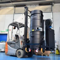 Las aspiradoras Puma de Depureco incorporan un práctico y robusto contenedor de 46 galones, equipado con un sistema de liberación para recoger y desechar cómodamente los materiales aspirados. Para facilitar la manipulación, el contenedor está equipado con cuatro ruedas giratorias montadas sobre soportes reforzados, que garantizan una fácil maniobrabilidad incluso cuando se transportan varios kilos de material. Además, se dispone de un kit a la carta para manipular y descargar el contenedor con una carretilla elevadora, lo que aporta mayor comodidad y eficacia.