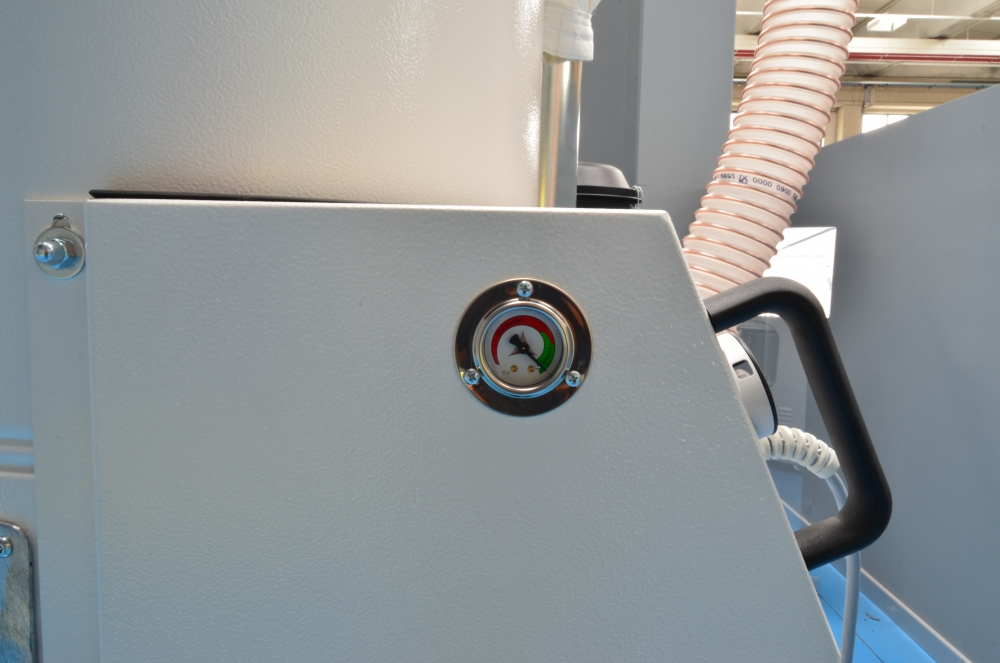 El diseño de la entrada tangencial tiene por objeto facilitar el descenso del material al contenedor. En el interior de la cámara se ha soldado un robusto ciclón metálico que reduce significativamente la velocidad a la que entra el material, garantizando que caiga directamente en el contenedor. Este eficaz diseño protege el filtro y minimiza el riesgo de obstrucción.
