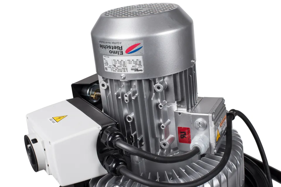 El mecanismo de succión de la aspiradora utiliza un soplador de canal lateral con una conexión directa entre el motor y el impulsor. Este soplador de canal lateral incorpora una válvula de seguridad que garantiza la máxima seguridad durante el funcionamiento continuo, sin necesidad de mantenimiento.
