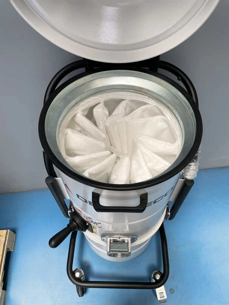 The MINI AIR Z2-Z22 is an intrinsically safe compressed air vacuum cleaner that offers exceptional power and versatility for a wide range of industrial applications. It features two parallel working ejectors that deliver maximum performance. Each ejector is adjustable, allowing for customized airflow or vacuum strength depending on the specific task at hand. Inside the vacuum cleaner, you’ll find a large surface filter made of antistatic polyester, certified as M class with a filtration efficiency of 1 micron. This filter ensures the safe collection of electrostatically charged dust. Additionally, an optional H14 filter is available for capturing the finest particles. The vacuum cleaner comes equipped with an effective manual filter cleaning system. By simply using the lever located outside the filtering chamber, the operator can shake the filter, causing the dust to be deposited directly into the collection container. For convenient disposal, a spacious 12 gal release container with wheels is provided, making it easy to empty the vacuumed material.