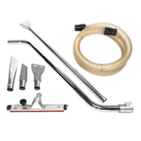 With an externally mounted pump, the tank can be rapidly emptied, leaving no residue behind. Since the pump is mounted externally, the full capacity of the tank can be utilized. The vacuum cleaner comes standard with the oil and chip accessory kit and includes a convenient accessory basket and two hose holder hooks.