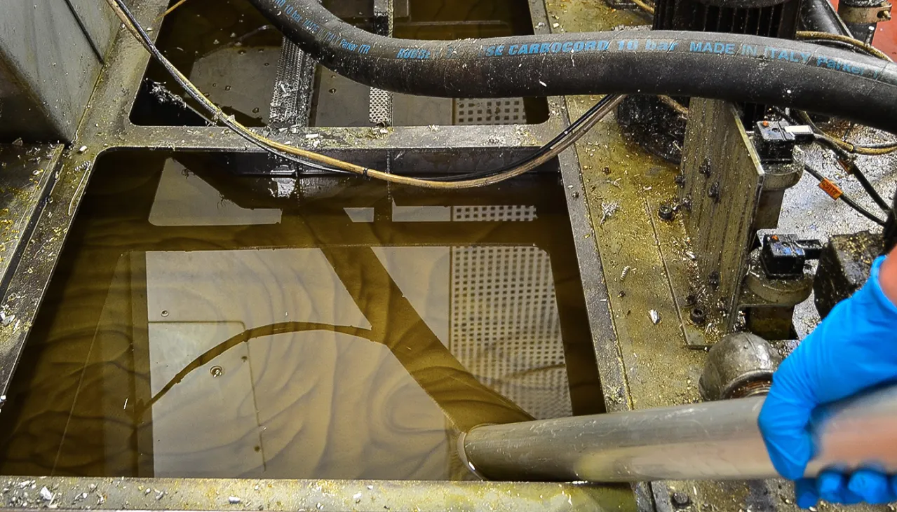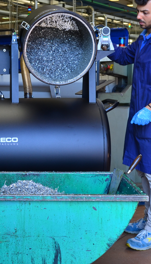 Professional-grade suction power is generated by a reliable side channel blower (T 500) or by 3 single phase motors (T 500 MP), ensuring exceptional vacuum speed. The hopper designed for collecting shavings is equipped with a metal basket, effectively separating solid particles from the liquid portion, and a 150-micron filter for enhanced filtration of swarf.