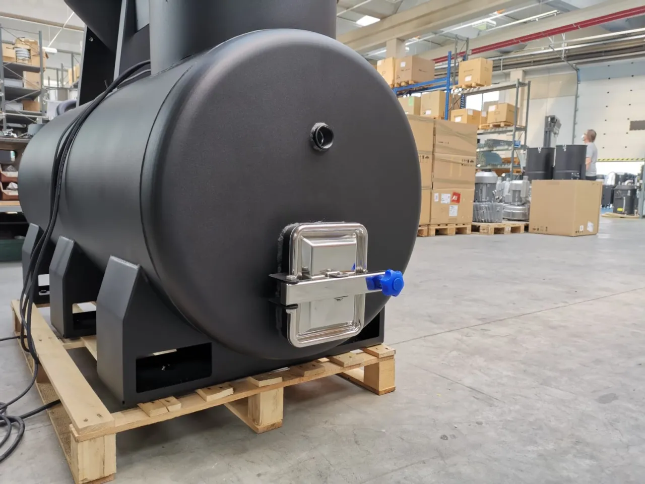 To discharge the tank, the vacuum features an externally mounted pump, maximizing the container's full capacity and guaranteeing thorough emptying without any residue.