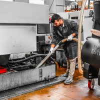 The RAM 280 MP combines strong suction with 280-liter tank capacity. Ideal for mid-sized CNC sump cleaning, reclaiming coolant while removing chips and swarf.