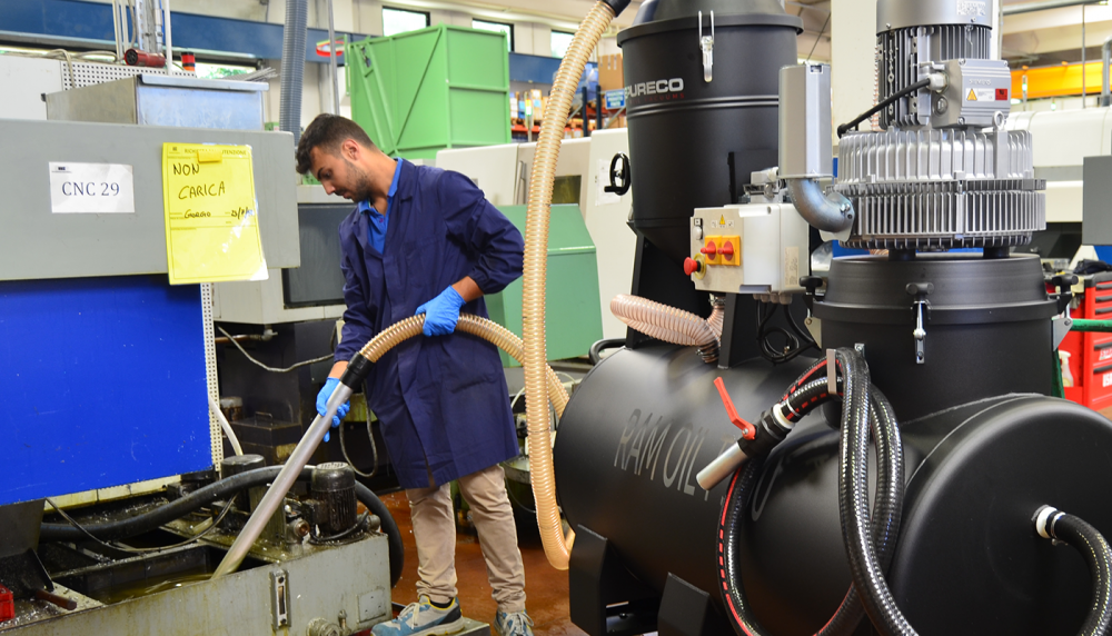 Depureco coolant sump vacuums filter out chips, swarf, and fine sludge—then pump clean coolant back into your CNC tank in minutes.